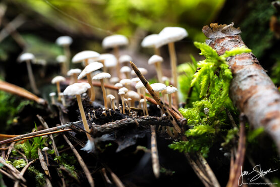 Tiny Translucent Mushrooms Close-up. Tamron 90mm Macro Lens