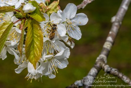 Bee on apple blossoms. Tamron 90mm Macro Lens