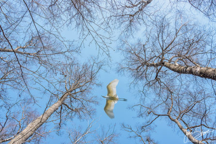 Great white heron flying over Kemeri National Park. Tamron 600mm