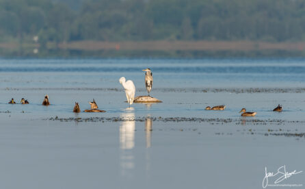 Great White Egret and Grey Herons- Summer - Burtnieks, Latvia
