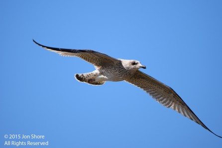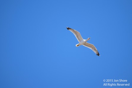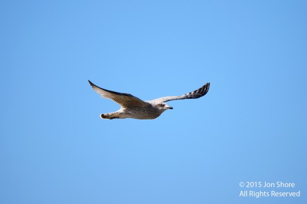 Seagull Flying in Blue Sky. Nikkor 300mm.