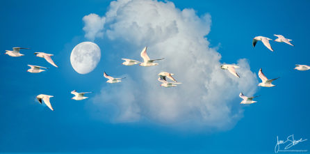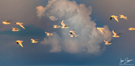 Gulls in Cumulonimbus clouds. Tamron 300mm
