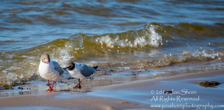Two Seagulls walking along on Jurmala Latvia Beach. Tamron 300mm lens