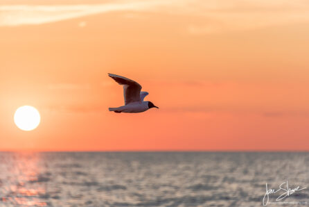Black Headed Seagull flying over Baltic Sea. Tamron 300mm
