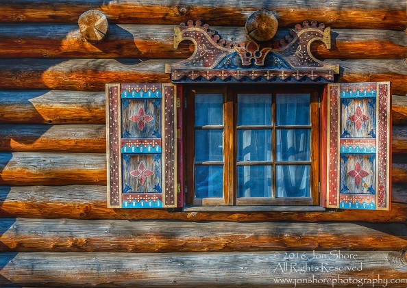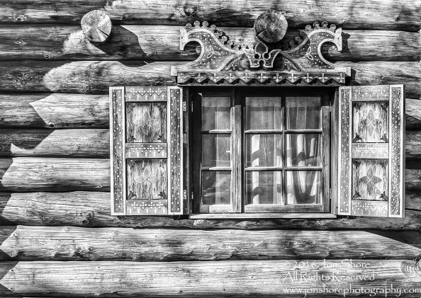 Window on old Russian cabin, Riga Latvia. Tamron 200mm