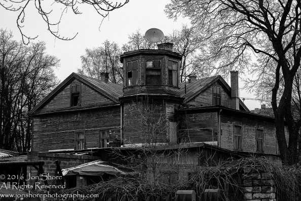 Old wood house Riga, Latvia BW. Tamron 70mm