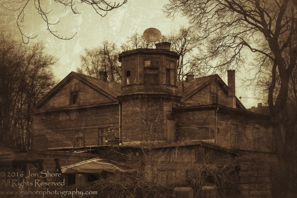 Old wood house Riga, Latvia Sepia old style. Tamron 70mm. Photoshop image filters