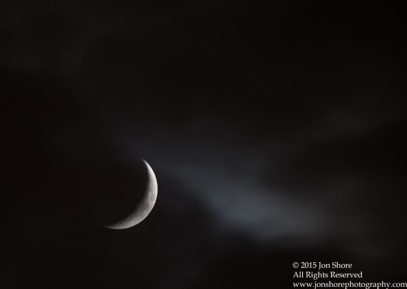 Crescent Moon in Black Sky with Clouds. Tamron 600mm