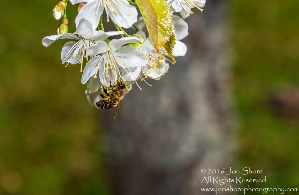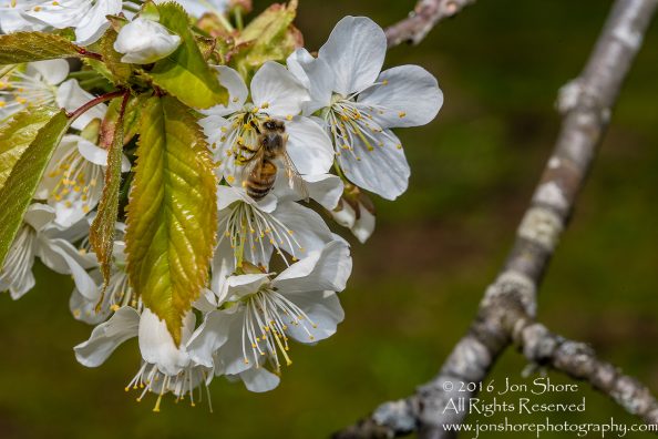 Bee on Blossoms. Tamron 90mm Macro