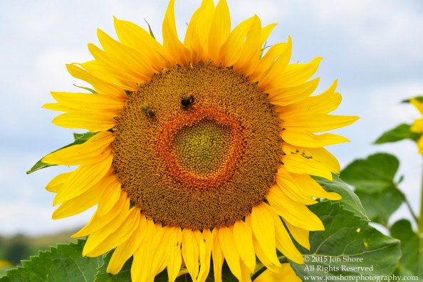 Sunflower with two bees making it look like a Smiling Sunflower. Czech Republic