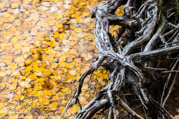 Roots and Yellow Leaves on the Shore of a Latvian Lake. Cesis, Latvia.