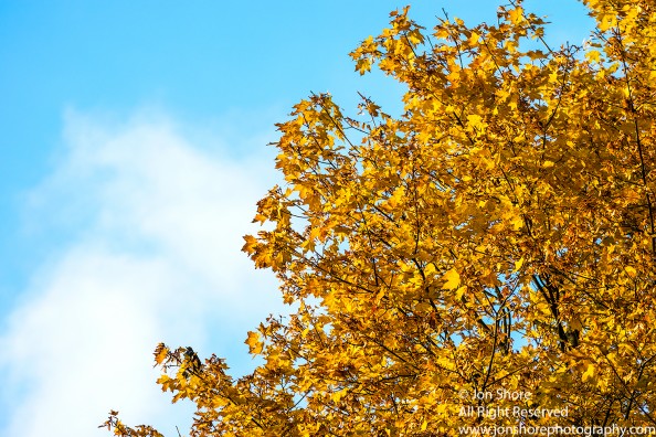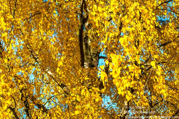 Yellow Leaves on a Silver Birch with Blue Sky.