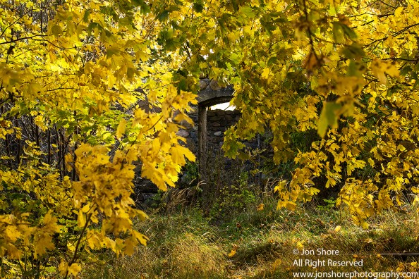 Old Stone House Surrounded by Yellow Autumn Leaves. Engure, Latvia.