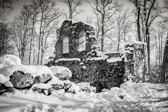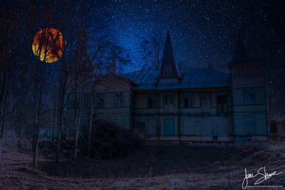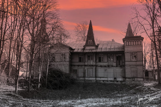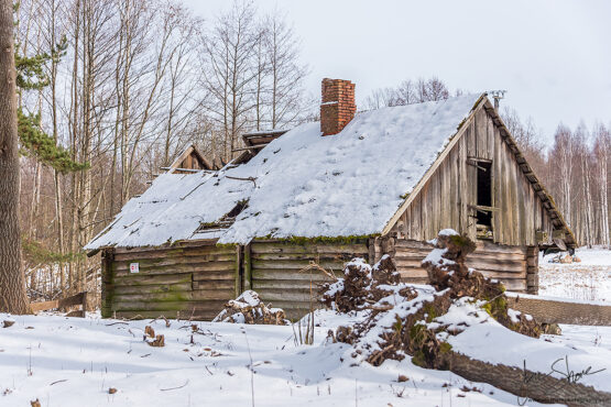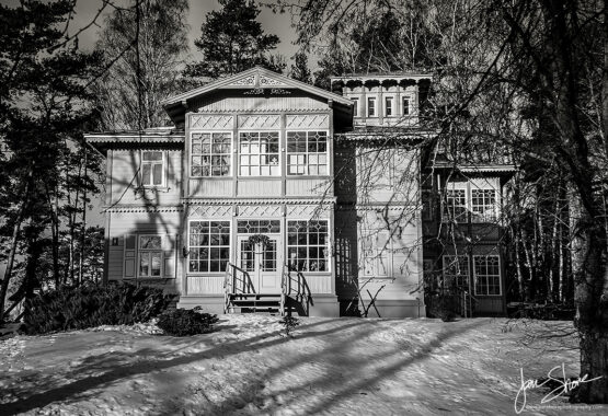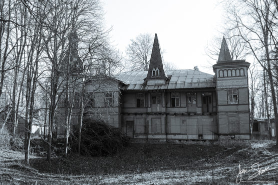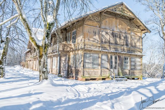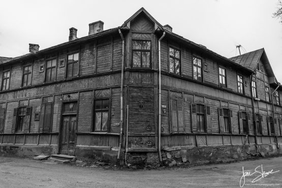 Old Wood Apartment House in Riga, Latvia in Winter. Nikkor 85mm