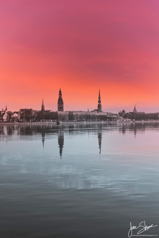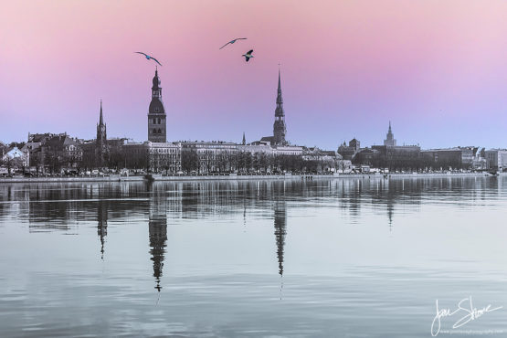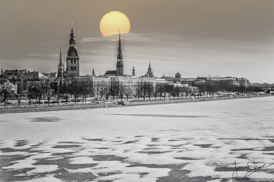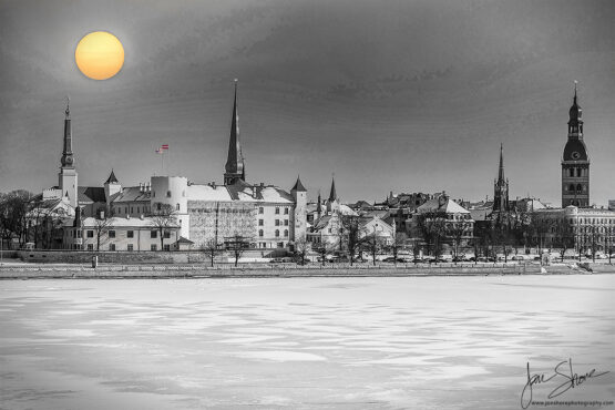 Riga Latvia Cityscape in Winter. Nikkor 300mm