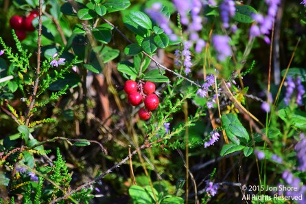 Purple Flowers and Wild Lingonberries on the Forest Floor - Latvia