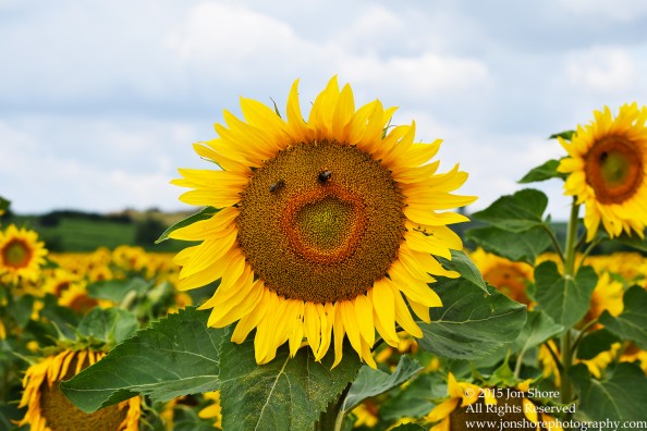 Sunflower with Bees Looking Like a Smile. Czech Republic.