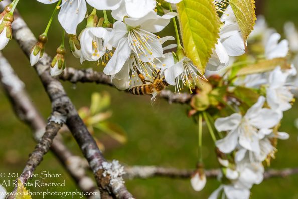 Bee on Blossoms. Tamron 90mm Macro