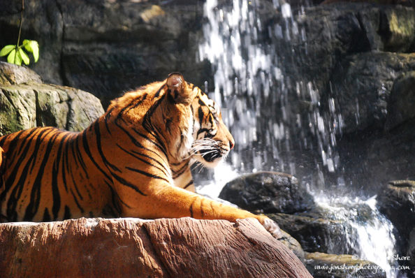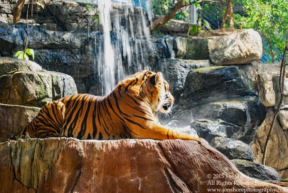 Tiger Resting by Waterfall. Denver Zoo.