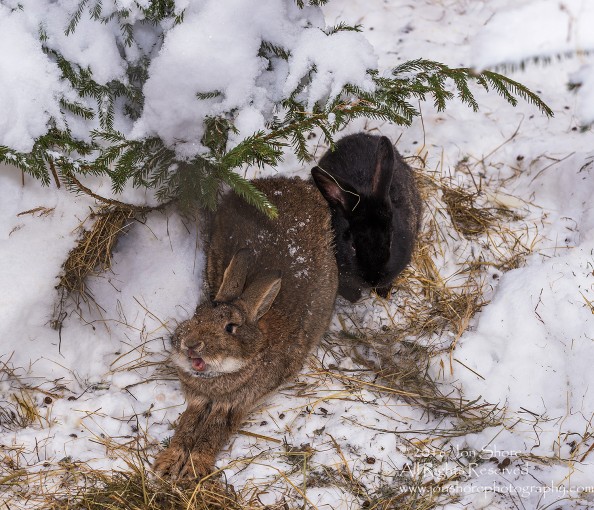 Rabbits in the snow. Latvia